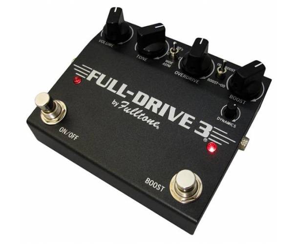 La Full-Drive 3 utilise des transistors JFET sur son entrée et son ampli-opérationnel, pour un son encore plus typé lampe. Elle propose également un switch pour sélectionner l'ordre de chaînage entre le boost et l'overdrive, un autre switch 3 positions pour choisir entre le mode ''90's'' avec un clipping à asymétrique riche en médium, un mode ''wide asym'' pour un son plus brillant et plus ouvert, un mode ''cc'' Comp-Cut pour un overdrive purement ampli-op et sans clipping, agressif et puissant. La section de boost clair est complètement indépendante de l'overdrive avec un volume dédié ainsi qu'un mini-réglage Dynamics pour contrôler la diode au germanium ce qui enlève le côté strident lorsque l'on attaque bien les cordes. Le circuit de boost n'inverse pas le signal comme la plupart des autres et il peut être utilisé avec ou sans la section d'overdrive. Pour finir, la FD3 est 20% plus petit que la Full-Drive 2 !