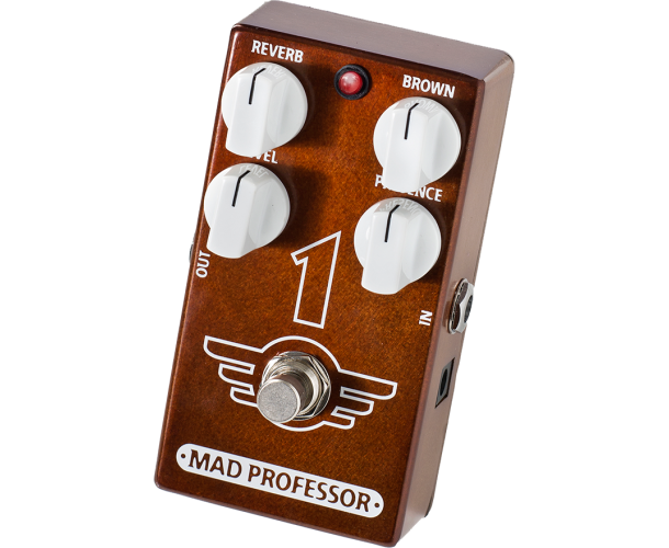 Pédale de saturation et réverb conçue pour donner ce son Brown de la fin des années 70 et début 80, lorsqu'elle est utilisée sur un ampli clair. Elle produit donc un overdrive intense tout en gardant une grande définition. Son gain va de la distorsion moyenne à très lourde. La réglage Brown contrôle la quantité et les harmoniques de la distorsion. Elle possède également une réverb intégrée pour ajouter une ambiance et de la profondeur à votre son. Le son du circuit de réverb est inspiré des réverbs de studio qu'on trouve sur les enregistrements des années 80. Le temps de la retombée est prédéfini pour ne pas déranger le rythme de votre jeu mais il peut être modifié grâce à un réglage à l'intérieur de la pédale.