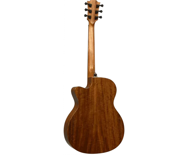 Le dos et les éclisses en ovangkol flammé complètent à merveille la table en épicéa. Ce bois exotique, visuellement saisissant, délivre des basses profondes et des aigus limpides, pour un équilibre sonore remarquable et des harmoniques riches. Une combinaison parfaite pour un rendu sonore chaleureux et expressif.