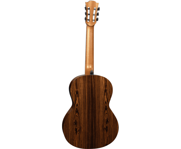 - Table : Épicéa Sitka bearclaw - Cordes : nylon - Touche : Blackwood - Barrage : Éventail - Sillets : Graphite - Chevalet : Blackwood - Finition : Brillante - Format : 4/4 - Mécaniques : Classiques - Housse/étui : Étui moulé - Catégorie : Classique électroacoustique - Accastillage : Noir satiné - Manche : Khaya - Coloris : Naturel - Fond & éclisses : Snakewood, Bocote figuré - Dimensions (mm) : 1120 x 485 x 190 - Électronique : HyVibe System - Gaucher : Non - Pan coupé : Non - Radius : 0 mm - Diapason (mm) : 650 mm - Largeur au sillet : 52 mm - Nbre de cordes : 6 - Nbre de frettes : 20 - Specs complémentaires : Manche - Tige de réglage : double sens - Frettes : silver nickel - Medium Système HyVibe : - Multi effet acoustique - Looper acoustique intégré - Enceinte bluetooth - Accordeur - Métronome