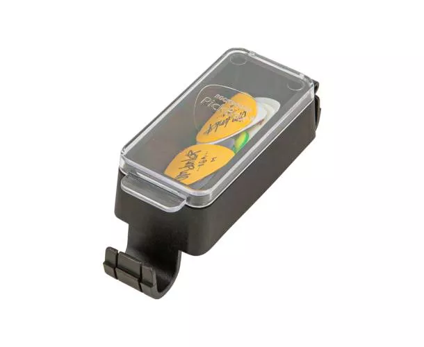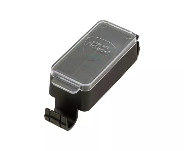 Pick Box pour pédaliers Rockboard. Se clipse fermement et solidement dans la grille du Rockboard. Stocké les médiators et autres petits accessoires directement sur votre pédalier.