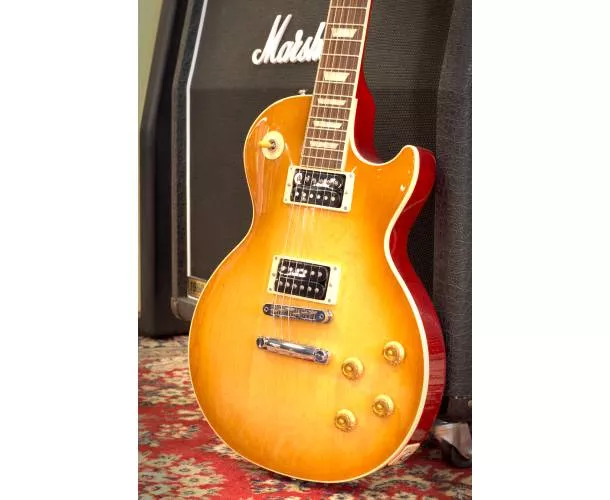 Les fans de GunsN'Roses et de VelvetRevolver connaissent sans doute la guitare que Slash a baptisée "Jessica". Jessica est la principale guitare de Slash depuis 1988. La Jessica originale était une "factory second"et l'une des deux guitares LesPaul™ que Gibson a offertes à Slash à la fin des années 1980. Aujourd'hui, Gibson est fier de présenter un nouveau modèle basé sur l'ancienne guitare préférée de Slash. Jessica est dotée d'une table d'harmonie à trois pièces, d'un corps en acajou à poids réduit et d'un manche en acajou avec un profil de style vintage des années 50. La Jessica est alimentée par un ensemble de micros Custom Burstbucker™ avec des aimants Alnico2 câblés à la main à des condensateurs Orange Drop.À l'origine, la Jessica été finie en Cherry Sunburst, ce qui se reflète, moins que l'usure considérable de l'original, dans la finition en nitrocellulose brillante HoneyBurst with RedBack utilisée pour le nouveau modèle. La signature de Slash est reproduite sur à l'arrière de la tête, et les boutons straplok Schaller sont préinstallées sur la guitare. Les autres accessoires comprennent un jeu de médiator slash, un étui en cuir, un multi-tool et un Truss rod cover vierge.