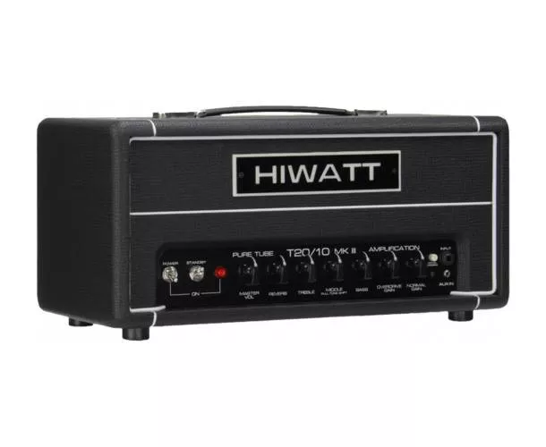Le T20/10 est un ampli à deux canaux qui combine le son clair Hiwatt classique et un canal overdrive avec 20 watts de puissance en EL84, une boucle d’effets, et une véritable reverb à ressort. La fonction de réduction de puissance permet de passer à 10 watts pour faire cruncher les lampes même à faible volume. Très efficace pour la scène, c’est également une excellente plateforme pour vos pédales.