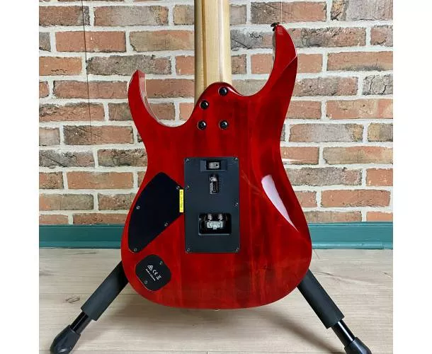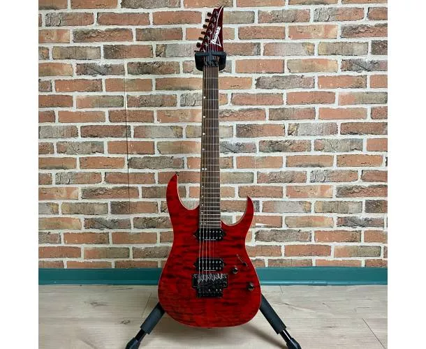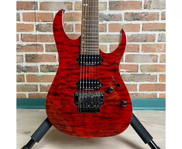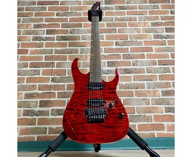 La RG927FXQM est une guitare 7 cordes taillée pour les guitaristes techniques et exigeants. Issue de la série Premium Ibanez, elle bénéficie de finitions haut de gamme : frettes jumbo limées à la main, table en érable ondé (Quilted Maple) sublimée par un vernis transparent rouge Red Desert, et une conception ultra précise pensée pour la performance.