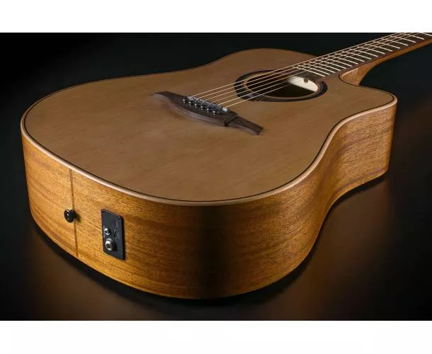La HV10DCE allie la puissance emblématique de la forme dreadnought au préampli révolutionnaire HyVibe H2. Sa table en cèdre rouge massif et son dos et éclisses en acajou Khaya offrent une sonorité chaude et une projection exceptionnelle, idéale pour le strumming puissant et le jeu en solo, facilitée par le pan coupé. La finition satinée met en valeur son esthétique naturelle, tandis que la touche et le chevalet en Brown Brankowood écoresponsable garantissent confort de jeu et durabilité.
