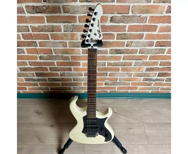 Modèle emblématique de la production Aria Pro II, la The Cat est une guitare électrique solid body au look affirmé et au tempérament résolument rock. Connue pour sa lutherie efficace et son excellent confort de jeu, elle se distingue ici par une modification au niveau du micro chevalet, remplacé par un humbucker passif, apportant davantage de puissance, de corps et de polyvalence sonore.