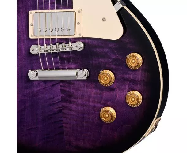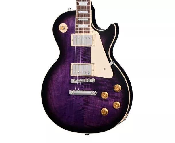 Faites une déclaration audacieuse, sur le plan sonore et visuel. Le modèle Standard 50s Figured Top revient à un design classique qui a façonné le son à travers les générations et les genres musicaux. Il rend hommage à l'ère d'innovation dorée de Gibson avec son corps en acajou solide, une table en érable figuré AA et une finition en laque nitrocellulose personnalisée qui met en valeur la beauté de l'érable. Le manche en acajou présente un profil Vintage arrondi des années 50 et une touche en palissandre avec des incrustations trapézoïdales. Équipé d'un chevalet ABR-1 et du classique Tune-O-Matic™, il dispose également de mécaniques Vintage Deluxe avec boutons Keystone et de boutons Top Hat dorés. Les micros Burstbucker™ 1 (manche) et Burstbucker 2 (chevalet), chargés d'aimants Alnico 2, sont raccordés à des potentiomètres à taper audio et à des condensateurs Orange Drop®. Un étui rigide est inclus.