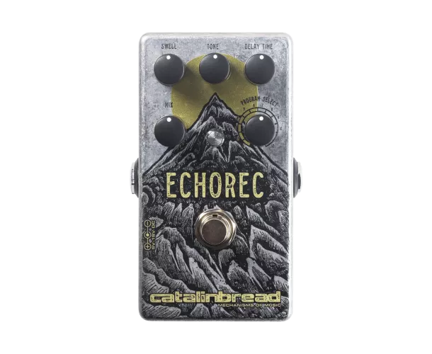 Catalinbread propose une reproduction du légendaire Binson Echorec en format pédale, avec le fameux préamp et le sélecteur de têtes de lecture du modèle d'origine.