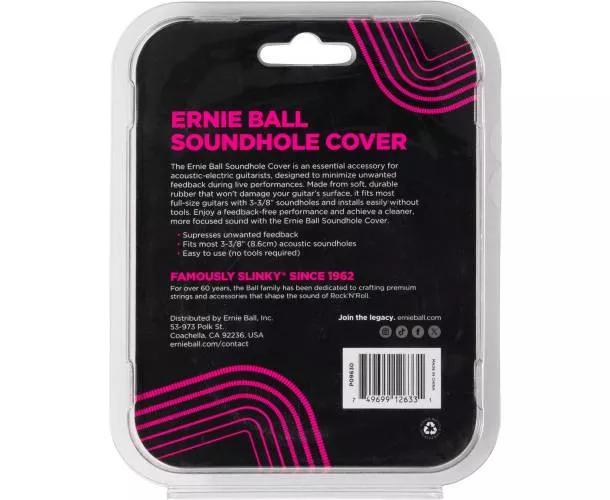 Éliminez les bruits et les larsens indésirables et profitez d'une sortie audio optimale pour vos guitares électro-acoustiques avec le bouchon de rosace Ernie Ball. Conçu pour s'adapter à la plupart des rosaces de guitares acoustiques de type "small" ou des guitares classiques, il offre également une protection contre la poussière et la saleté. Fabriqué en caoutchouc durable non abrasif, il n'endommagera pas la surface de votre instrument. Facile à installer, le bouchon de rosace Ernie Ball ne nécessite aucun outil.