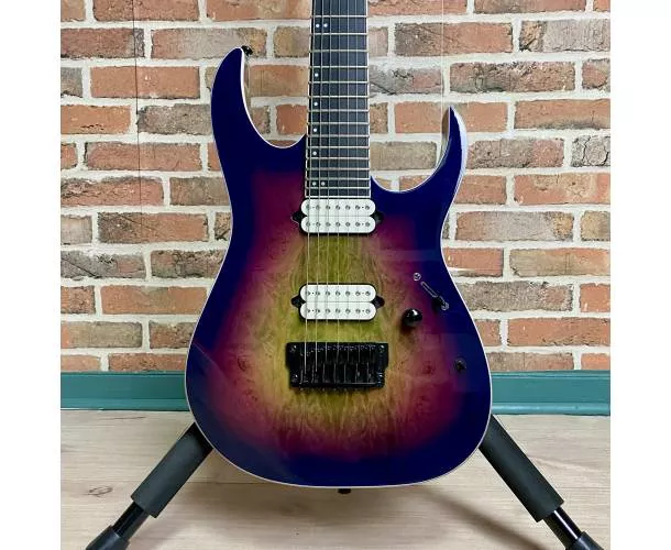 Son corps en frêne surmonté d’une somptueuse table en loupe de laurier finie en Northern Lights Burst capte immédiatement le regard. Le tout entouré d’un binding blanc soigné, pour une esthétique raffinée. Le manche vissé en érable/amarante 3 pièces est profilé Nitro Wizard-7 pour un confort optimal et une grande rapidité.