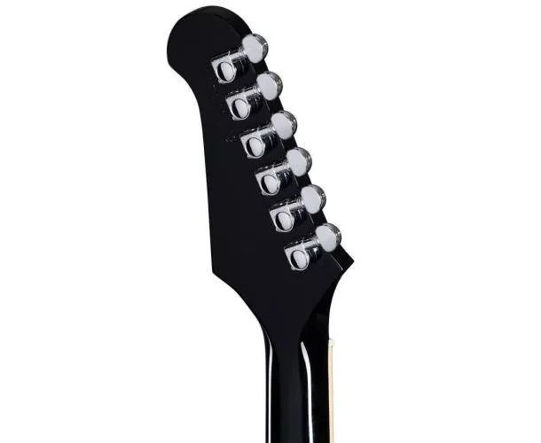 Le manche en acajou possède un profil SlimTaper™, complété par une touche en palissandre avec un radius de 12 po, 22 frettes médium jumbo, et des incrustations trapézoïdales en acrylique. La tête de style Platypus est équipée d’un sillet Graph Tech® et de mécaniques Grover® Mini Rotomatic®, ajustées pour offrir une ligne de tirant droite, réduisant les frictions et améliorant la stabilité de l’accord. Les cordes sont montées sur un chevalet Nashville Tune-O-Matic™ pour une intonation précise, fixées avec un cordier Stop Bar en aluminium, offrant un sustain exceptionnel. La Firebird Platypus, avec son apparence unique, produit une sonorité exceptionnelle grâce à ses deux micros Mini-Humbucker™ Firebird.