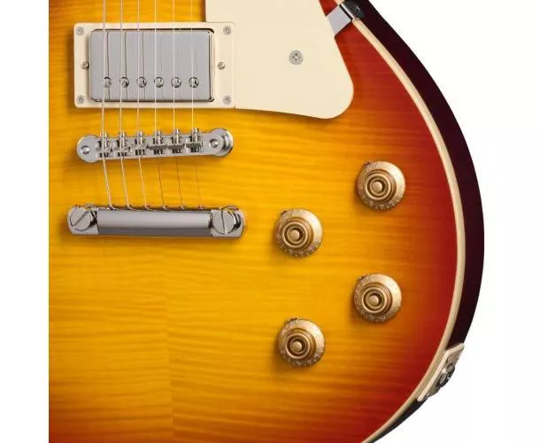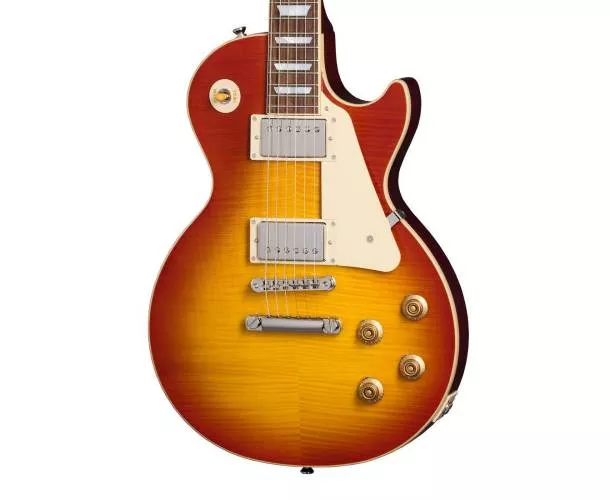 Créée en collaboration avec Gibson™ Custom, l’Epiphone 1959 Les Paul™ Standard est une reconstitution d'un classique vintage rare, actualisée pour être plus authentique et fidèle aux originaux. Elle présente un corps en acajou avec une table en érable et un placage en érable moiré de qualité supérieure, un manche en acajou monobloc avec un profil C moyen confortablement arrondi, un tenon à col long, et une tête R9 « open book » de style Gibson. Finition VOS (Vintage Original Sheen), micros Custom Bucker Humbucking Gibson, commutateurs et jack de sortie 0,63 cm Switchcraft®, potentiomètres CTS®, câblage années 50, condensateurs Mallory™, pickguard non biseauté et un étui rigide marron et rose de style vintage. Testez-les dès maintenant et préparez-vous à être émerveillé !