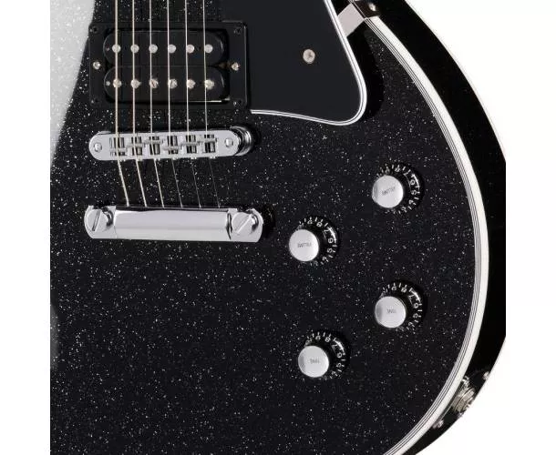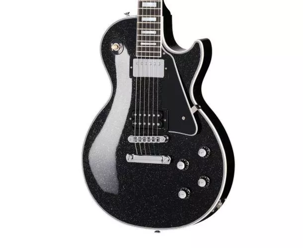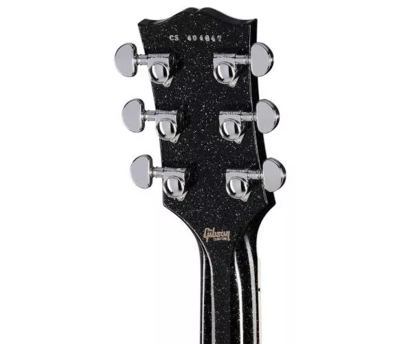 De loin, cette Les Paul Custom pourrait sembler similaire à un modèle standard, mais de près, la finition Andromeda Black se révèle unique, intégrant des paillettes blanches et argentées dans la finition noire, tirant son nom d’une constellation nordique.