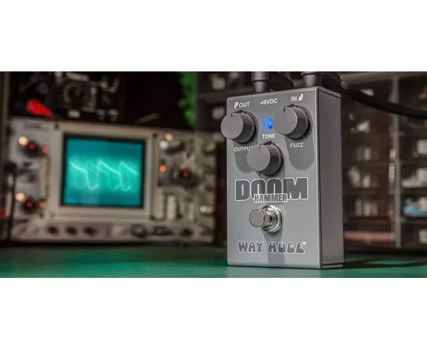 Tout a commencé dans le garage-laboratoire de Way Huge en 1998, lorsque Jeorge Tripps a modifié un circuit de fuzz à ampli-op de 1978 pour le groupe Oranger. Recherchée pour son creux moins prononcé dans les médiums, M. Tripps a affiné son design pour obtenir des graves plus fermes et une performance fiable sur scène. Des années plus tard, il a conçu plusieurs prototypes basés sur cette version modifiée — donnant naissance à la Doom Hammer Fuzz.