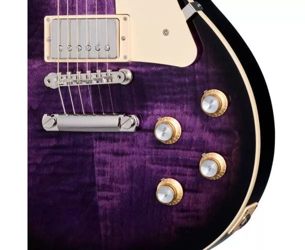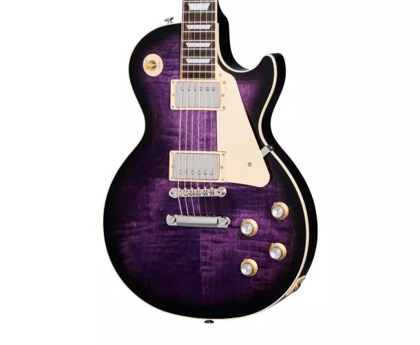 Le modèle Les Paul™ Standard 60s Figured Top revient à son design classique, apprécié à travers les générations et les genres musicaux. Il rend hommage à l'Époque d'Or d'Innovation de Gibson. Cette guitare possède un corps en acajou massif avec une table en érable figuré AA, visible sous un vernis nitrocellulosique translucide qui attire les regards. Le manche en acajou présente un profil SlimTaper™ de style des années 60 et une touche en palissandre avec des incrustations en trapèze. Elle est équipée d'un chevalet ABR-1 Tune-O-Matic™, de mécaniques Grover® Rotomatic®, et de potentiomètres Top Hat dorés avec réflecteurs argentés. Les pickups Burstbucker™ des années 60 avec aimants Alnico 5 et câblage haut de gamme sont également présents. Un étui rigide est inclus.