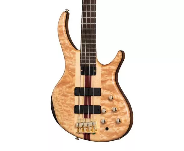 Découvrez la Tobias Classic IV, une basse qui offre une clarté exceptionnelle dans les graves, des médiums percutants et doux dans les aigus. Fabriquée à partir de bois nobles, elle est dotée d’un manche de 86,3 cm en cinq parties en érable dur et en wood de purpleheart, avec un corps à trois couches en noyer et wengé, coiffé d’un capuchon en érable hautement figuré. Le manche possède une touche en wengé, 24 frettes jumbo, un sillet en os et un profil Tobias Asym™ pour un confort de jeu optimal. Équipée d’accordeurs Gotoh®, d’un chevalet Babicz® pour une action exceptionnelle, elle dispose également de deux micros Humbucker Bartolini® actifs, d’un préamplificateur de 18 V ainsi que de commandes pour le volume, les basses, les médiums, les aigus et le mélange, et d’un sélecteur de fréquences moyennes. Une housse premium Tobias est fournie.