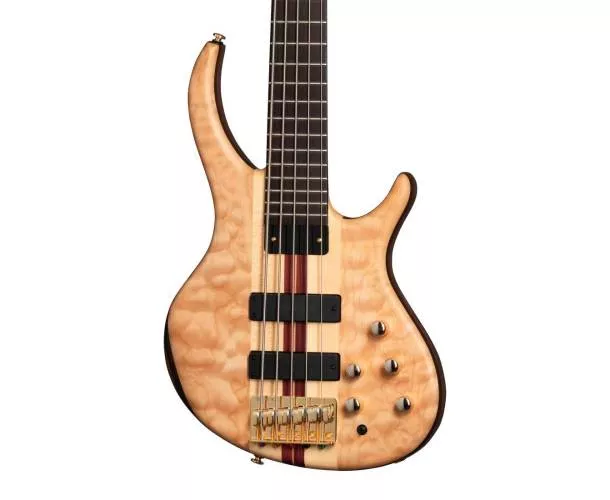 Le Tobias Classic V offre une performance exceptionnelle avec des basses claires, un milieu de gamme punchy et des hautes fréquences douces. Fabriqué avec des matériaux de qualité, il présente un diapason de 34 pouces, un manche traversant en érable dur et bois de purpleheart en 5 pièces, ainsi qu'un corps en noyer et wenge avec une table en érable matelassé figuré. Il est équipé d'une touche en wenge avec 24 frettes jumbo, d'un sillet en os, d'un profil Tobias Asym™ facile à jouer et de mécaniques Gotoh®. Un chevalet Babicz® assure une action et une ajustabilité d’intonation exceptionnelles. Deux micros humbucking actifs Bartolini® et un préampli 18V, accompagnés de contrôles de volume, basses, médiums, aigus et blend, vous permettent de sculpter votre son idéal. Une housse premium Tobias est également incluse.