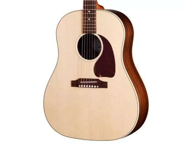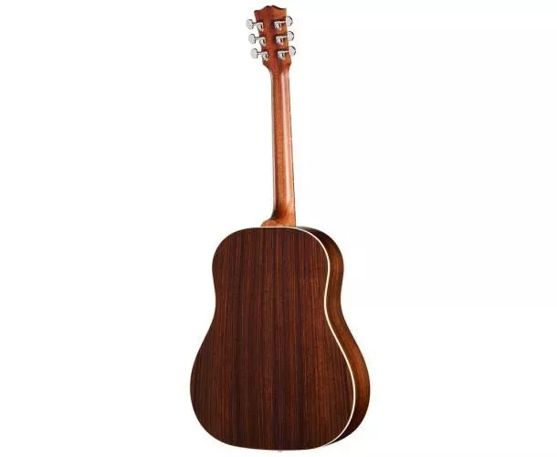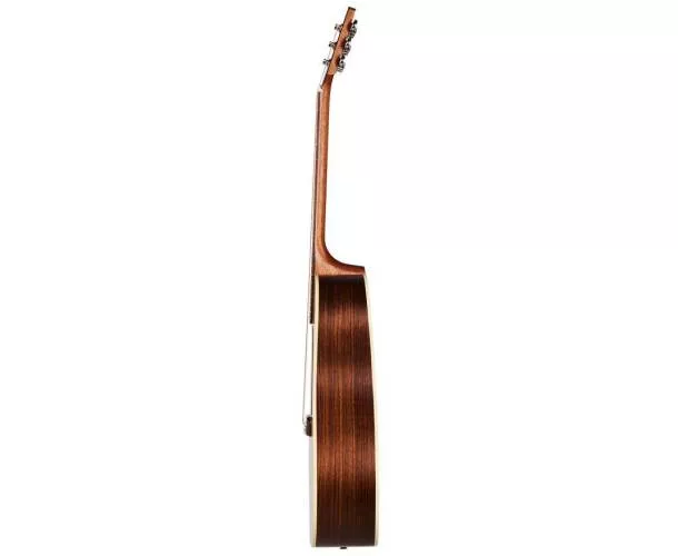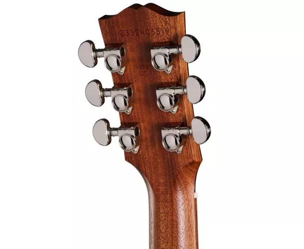 Le dos et les éclisses en palissandre satin fini en nitrocellulose offrent des basses riches et des aigus pétillants. Le corps plein et à épaule ronde assure une tonalité profonde, un volume exceptionnel et une bonne projection. Équipé d'un profil Advanced Response et d'un manche en finition satin, il offre une jouabilité fluide et facile. La touche en palissandre comprend 20 frettes de taille standard et des repères simples en nacre, caractéristiques visuelles de la J-45 iconique. Le radius de 16” de la touche facilite les courses rapides de notes, contribuant à son excellente jouabilité.
