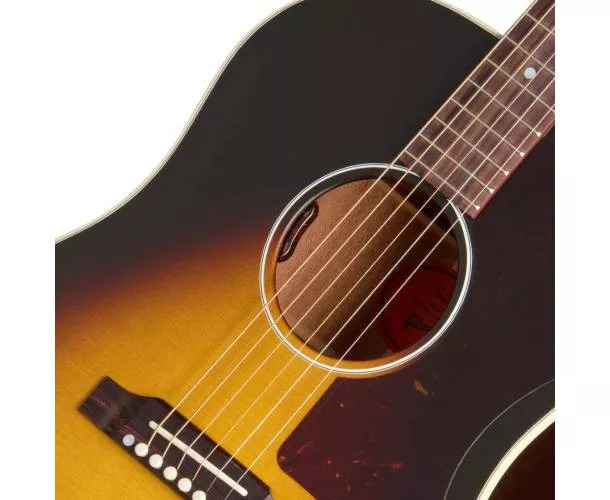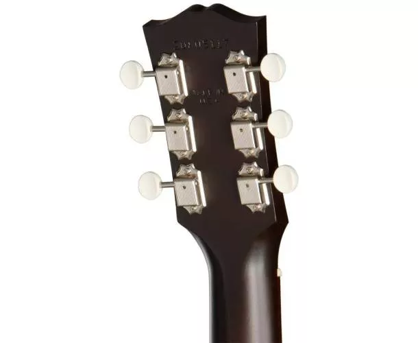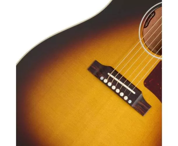 Le J-45 50s Faded suit la formule traditionnelle de tonalité du J-45, avec une table en épicéa Sitka massif, un dos et des éclisses en acajou massif, et un manche de 24 3/4” en acajou. Il présente un profil arrondi confortable et est coiffé d'une touche en palissandre sans binding, équipée de 20 frettes standard et ornée de simples incrustations en nacre. Le chevalet en palissandre est doté d'un sillet en os et de chevilles de chevalet TUSQ®. La tête de la guitare est équipée de mécaniques Gotoh à rotation douce avec des boutons blancs pour une apparence vintage. Le J-45 50s Faded est fini en nitrocellulose satinée, accentuant son ambiance vintage. Il est également équipé d'un système de micro sous-selle L.R. Baggs™ VTC moderne avec un préampli intégré, et les contrôles de volume et de tonalité sont montés discrètement dans le trou de résonance, rendant la guitare prête à l'utilisation en studio et sur scène dès que vous la sortez de l'étui rigide inclus.