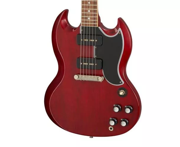 Cette guitare est un clone fidèle de l'originale 1963 SG, un modèle qui a marqué l'histoire. Construite à partir d'une pièce unique d'acajou pour une richesse sonore optimale, elle dispose d'un manche sculpté de 1963 avec un profil en C moyen, offrant un poids confortable et une jouabilité exceptionnelle. Les deux micros Soapbar P-90 produisent un son léger, mordant et moins raffiné, caractéristique de ce modèle. Les authentiques frettes Medium jumbo sont montées sur une touche en palissandre d'Inde, agréable au toucher. Des accordeurs Kluson, un cordier Wraparound et une patine vintage complètent son allure légendaire et son ton historique.