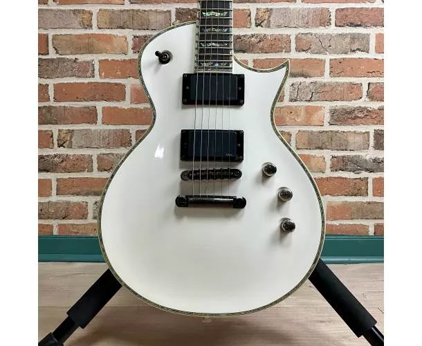 Une LTD EC-1000 Deluxe Snow White classique, recherchée pour son look emblématique et sa jouabilité professionnelle, idéale pour les guitaristes exigeants et les collectionneurs de modèles vintage LTD.