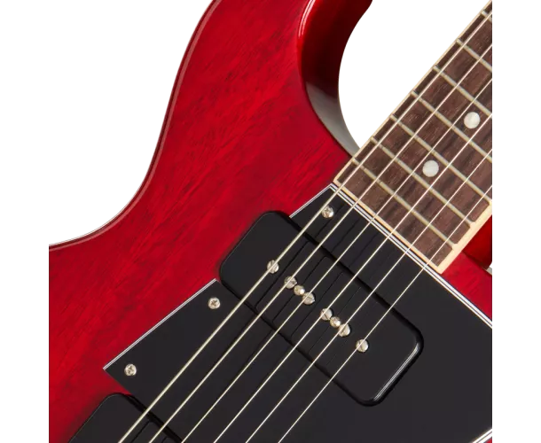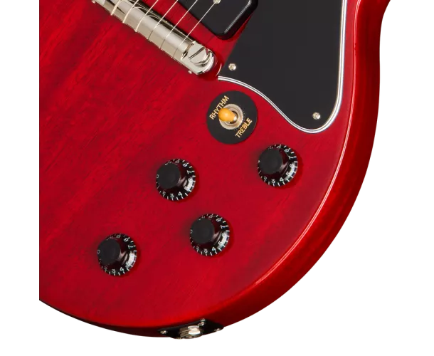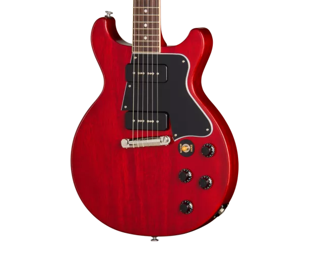 La Gibson Les Paul™ Special a été lancée en 1955 comme une version améliorée de la Les Paul Junior, une guitare électrique à corps plein quelque peu dépouillée mais de grande qualité, initialement conçue comme un modèle pour étudiants et commercialisée pour la première fois l'année précédente, en 1954. À l'instar des premières Junior, la Les Paul Special était à l'origine dotée d'un corps en acajou massif à simple pan coupé. La Les Paul Special ajoutait également un deuxième micro et des commandes supplémentaires pour celui-ci, ainsi qu'un sélecteur de micro, un binding pour la touche et un logo en nacre plus sophistiqué sur la tête. Bien qu'un peu plus ornée et riche en fonctionnalités, elle conservait le chevalet et le cordier simples de la Les Paul Junior, ainsi que son attitude sans fioritures, tout en élargissant encore davantage sa large gamme tonale. Elle a rapidement été adoptée non seulement par les étudiants, mais aussi par de nombreux musiciens professionnels. En 1958, la Les Paul Special est passée à un corps à double pan coupé, offrant un meilleur accès aux frettes supérieures. Le modèle a vraiment pris son essor en 1960 lorsque Gibson a repositionné le micro manche légèrement plus loin du manche, permettant un assemblage manche-corps plus stable, et un nouveau profil de manche SlimTaper™ l'a rendu plus rapide et plus facile à jouer que jamais.
