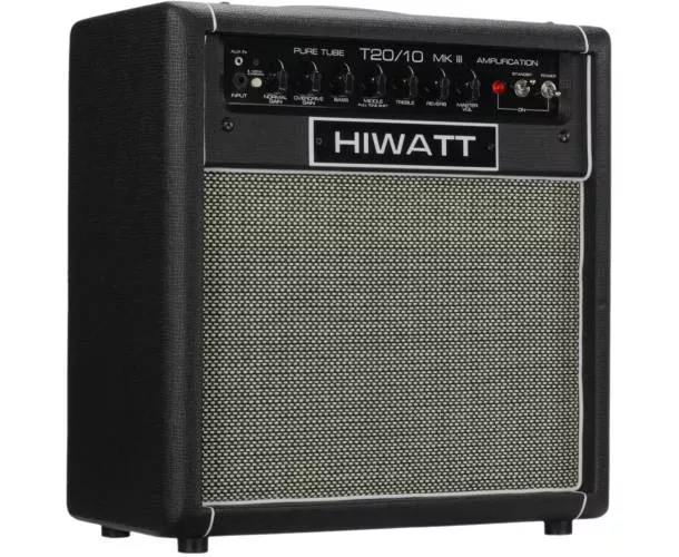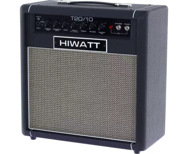 Le Hiwatt T20/10 est un combo guitare à lampes 20W, commutable en 10W, doté de deux canaux (clair et overdrive), d’une réverb à ressort et d’une boucle d’effets. Avec ses lampes EL84 et ECC83/ECC82, son EQ 3 bandes avec Tone Shift, ses entrées variées et sorties ligne/HP, il offre une excellente polyvalence pour la scène et la répétition. Son haut-parleur 12", sa construction robuste et ses contrôles précis en font un ampli compact, réactif et compatible avec de nombreuses configurations.