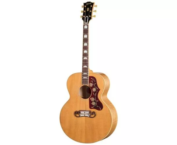 La Gibson SJ-200™, introduite pour la première fois en 1937, a rapidement gagné le surnom de "Roi des Flat-Tops" grâce à sa taille, son son de haute qualité, sa projection exceptionnelle et sa présence scénique imposante. En 1947, le bois utilisé pour les côtés et le dos est passé du palissandre à l'érable. Cette guitare a été adoptée par des artistes de divers genres, allant des cowboys d'Hollywood aux stars du rock. Les modèles vintage SJ-200 sont très recherchés par les collectionneurs.