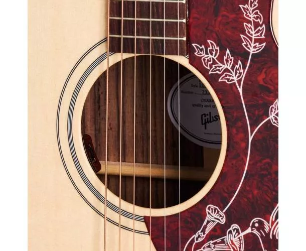 La Hummingbird™ Studio en palissandre poursuit la longue tradition de Gibson dans la production de guitares à épaule carrée mondialement célèbres, telles que le Hummingbird et le Dove™. Fabriquée à la main à Bozeman, Montana, cette guitare utilise des bois de tonalité 100% massif, incluant une table en épicéa Sitka à finition laquée nitrocellulose brillante, offrant une large plage dynamique et un ton équilibré. Le palissandre utilisé pour le dos et les éclisses produit des basses riches et des harmoniques aiguës étincelantes. Le corps de pleine profondeur garantit un son riche, profond et une excellente projection. Équipée d'un profil de manche Advanced Response, elle assure un jeu fluide. La touche en palissandre est dotée de 20 frettes standard et d'incrustations en nacre en forme de parallélogramme, emblématiques du design Hummingbird. Le rayon de 16” de la touche facilite le jeu de passages rapides. Le tête est équipé de mécaniques à rotation fluide Grover® Rotomatic® et d'un sillet en Tusq pour une stabilité d'accord optimale. Le chevalet et les épingles de chevalet en Tusq complètent cet instrument. Le micro piézo actif L.R. Baggs™ Element Bronze monté sous le chevalet, avec un contrôle de volume accessible, permet une qualité sonore exceptionnelle où que vous soyez. Livrée dans un étui rigide pour la protection et la portabilité, cette guitare est prête à vous accompagner partout.