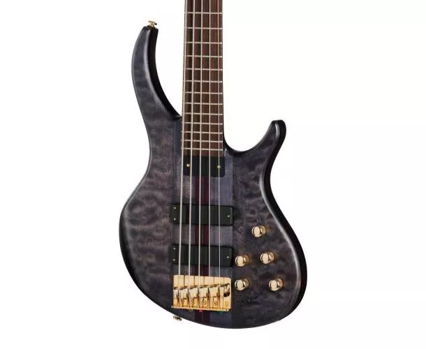 Découvrez la Tobias Classic V, une basse qui allie clarté exceptionnelle des graves, médiums percutants et aigus doux. Fabriquée à partir de bois nobles, elle dispose d'un manche de 86,3 cm en trois parties, combinant érable dur et purpleheart. Sa touche en wengé à 24 frettes et le profil de manche Tobias Asym™ assurent une jouabilité optimale. Le corps ergonomique est en paulownia, un bois léger et musical. Équipée de composants haut de gamme tels qu'un chevalet Babicz® et des accordeurs Gotoh®, cette basse possède également un micro Humbucker actif Bartolini® et une multitude de commandes de tonalité pour personnaliser votre son. Une housse premium Tobias est incluse.
