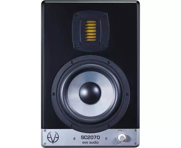 Le SC2070 est un moniteur bi-amplifié conçu pour les producteurs et les ingénieurs qui recherchent des détails exceptionnels, une large bande passante et une imagerie précise dans un format compact. Équipé d'un puissant woofer SilverCone de 6,5 pouces, il offre des réponses graves allant jusqu'à 38 Hz, associé au RS7 Air Motion Transformer, le plus grand AMT jamais utilisé dans un moniteur bi-amplifié EVE Audio. Cette combinaison assure une remarquable précision transitoire et clarté sur l'ensemble du spectre de fréquences, idéal pour l'écoute critique et le mixage. Le système DSP avancé, contrôlé via le SMART-knob, propose des options de réglage précises, y compris des filtres haut et bas, compensation de bureau et contrôle du volume avec verrouillage des paramètres. Son port bass reflex arrière garantit une extension efficace des basses sans distorsion, tandis que la conception du cabinet à faible diffraction soutient une large diffusion uniforme. Avec une amplification puissante de Classe-D (250 W pour le woofer / 100 W pour le tweeter) et un SPL max de 116 dB par paire, il offre des performances constantes même à des niveaux élevés. Qu'il soit utilisé en configuration stéréo ou dans un système multicanal, ce moniteur est la solution parfaite pour une surveillance transparente et dynamique avec une résolution élevée.