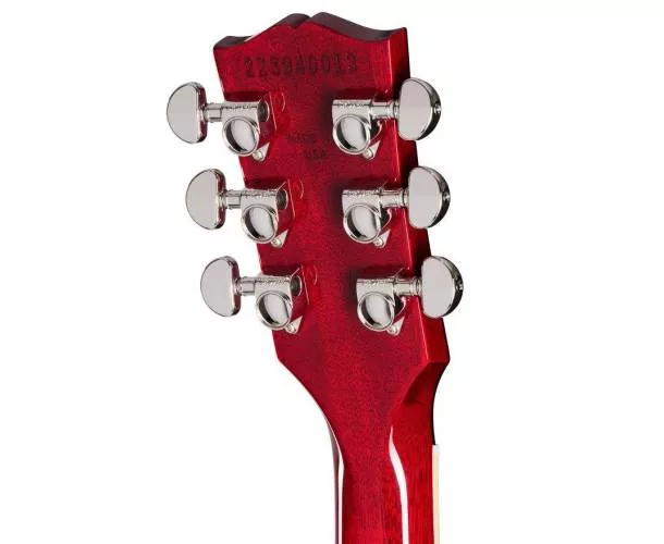 Les mécaniques Grover® Rotomatics® assurent une rotation fluide. Les contrôles incluent des potentiomètres Top Hat dorés avec réflecteurs argentés. Les micros BurstBucker™ 60s délivrent les tonalités classiques de Gibson, et un étui rigide est inclus pour protéger votre instrument lors de vos déplacements.