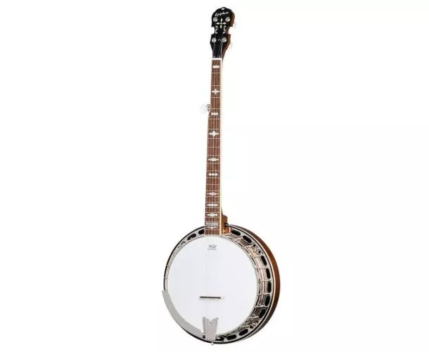 Epiphone fabrique des banjos depuis les années 1920. Ce modèle recrée l'un des banjos les plus désirables au monde – le classique Gibson RB-3 Mastertone 5 cordes des années 1930 – à un prix accessible. Le banjo Mastertone Classic d'Epiphone est doté d'un résonateur en acajou, d'un bord en acajou à 3 plis et d'accastillage en nickel, y compris un repose-bras. Le manche en acajou de 26,4 pouces (670,56 mm) présente une touche en laurier avec 22 frettes de taille moyenne/haute, ornée d'incrustations en nacre de type 3 et d'un bloc Mastertone à la fin de la touche. Un étui rigide est inclus.