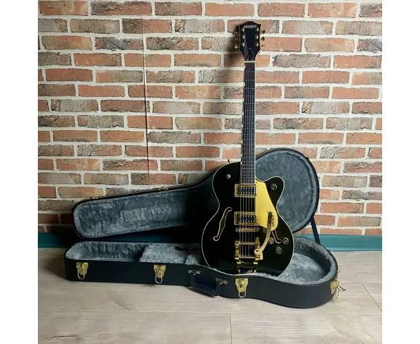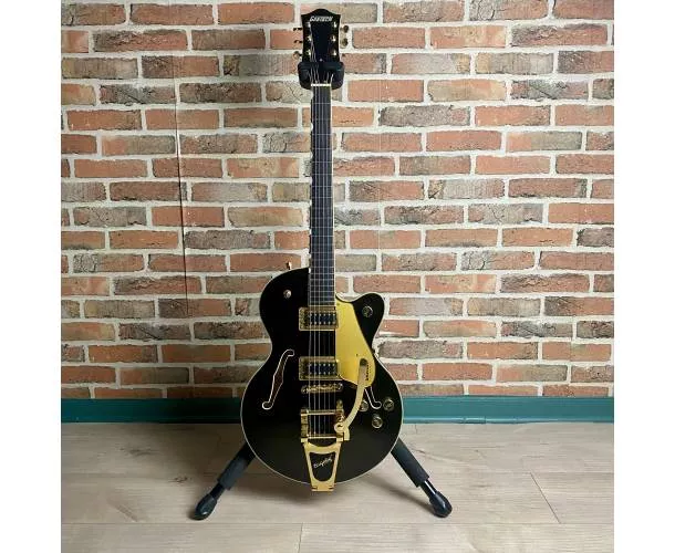 Équipée de deux humbuckers Broad’Tron Black Top, la G5655TG Jr. propose un son puissant, chaleureux et articulé, capable de couvrir un large spectre musical, du clean brillant aux saturations plus musclées. Le vibrato Bigsby B70, associé au chevalet Adjusto-Matic, apporte expressivité et stabilité, complétant un accastillage haut de gamme.