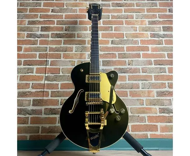La finition Cadillac Green, élégante et profonde, confère à cette Gretsch une forte personnalité visuelle, immédiatement reconnaissable.