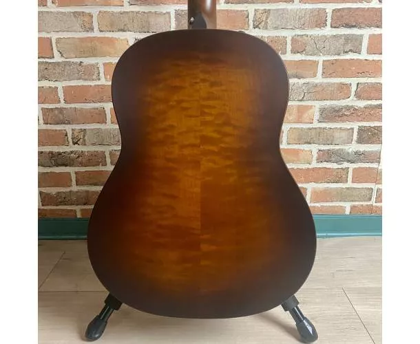 Son format Grand Pacific offre une réponse ample et chaleureuse, idéale pour l’accompagnement comme pour le jeu en picking. La combinaison table et fond/éclisses en érable massif figuré, associée au barrage V-Class, assure projection, sustain et précision remarquable. La finition mate ultra-fine favorise une résonance optimale et une grande dynamique. Sa table en érable flammée lui confère un look vraiment unique.