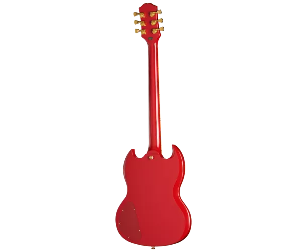 en doré. Des détails coordonnés tels que les anneaux de micros rouges, les boutons Speed, les caches de contrôle arrière