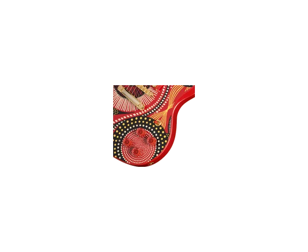 les touches personnelles de Fatoumata. Elle présente un corps en acajou surmonté de son graphisme signature, un
