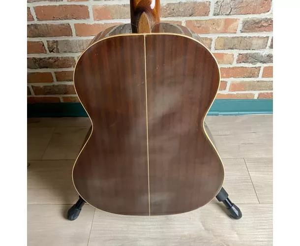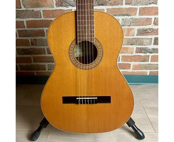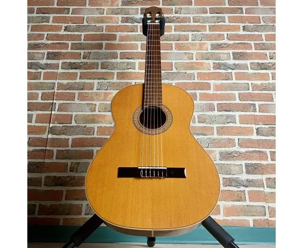 Son corps en acajou (dos et éclisses) délivre un timbre chaleureux et équilibré, avec des graves profonds et des médiums expressifs, tandis que la touche en palissandre assure confort de jeu et précision. La table massive en cèdre contribue à une projection chaleureuse et une belle rondeur sonore.