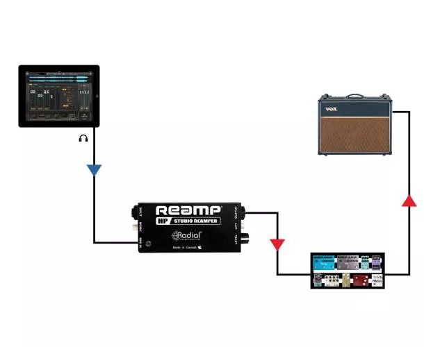 Le Reamp HP a été conçu pour prendre en entrée les signaux directement de la prise casque de n'importe quelle carte son. Il dispose de deux entrées : une en jack 6,35 mm et une autre en minijack 3,5 mm. Un transformateur assure une bonne isolation, éliminant ainsi les boucles de masse. Un potentiomètre permet un contrôle de sortie facilement accessible.