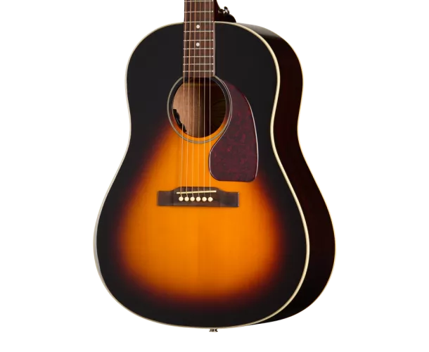 Nous avons également ajouté d'autres détails qui confèrent à la J-45 Studio un look encore plus vintage, notamment une plaque de protection en forme de goutte d'eau de couleur écaille foncée, des mécaniques trois en une avec des boutons en plastique couleur ivoire et une tête de manche de style Kalamazoo des années 60 arborant fièrement le logo Epiphone sérigraphié en doré. La J-45 Studio est équipée d'un système électronique Fishman, comprenant un micro sous le sillet S-Core et un préampli Fishman Presys VT avec des commandes de volume et de tonalité montées sur la rosace, faciles et rapides d'accès pour le musicien tout en restant pratiquement invisibles pour le public. La Epiphone J-45 Studio a une finition brillante et est proposée en deux couleurs d'inspiration vintage : Natural et Vintage Sunburst. Elle est disponible en version pour droitier et pour gaucher. Une housse de transport standard est également incluse.