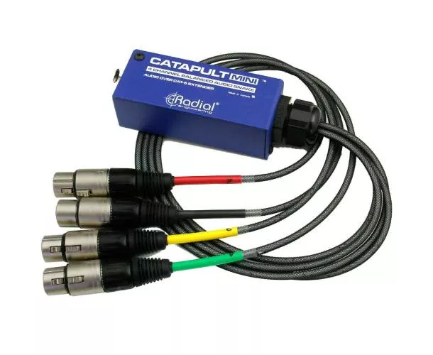 La Catapult Mini TX est un émetteur audio analogique multipaire à 4 canaux, conçu pour transmettre des signaux de niveau micro ou ligne à un Catapult Mini RX ou à un autre module Catapult situé à plusieurs dizaines de mètres. La transmission est assurée par un câble réseau Cat.5 blindé. Améliorez votre son avec cet émetteur de haute qualité.