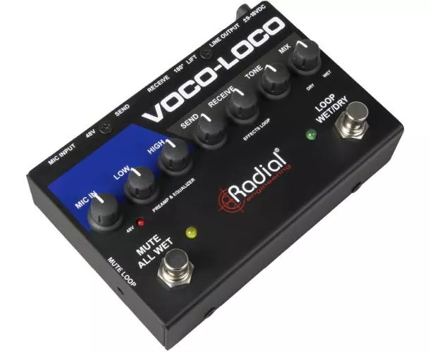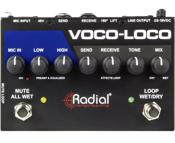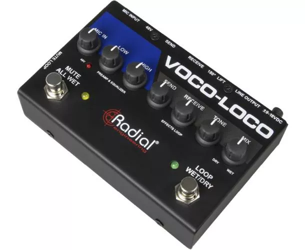 Le Voco-Loco est une pédale de boucle d’effets conçue pour permettre aux chanteurs, saxophonistes et trompettistes d’intégrer des pédales d’effet guitare dans leur chaîne de signal, tout comme un guitariste électrique enrichit ses solos. La version Mk2 offre des performances améliorées et fonctionne avec une alimentation de 9 à 18 V, facilitant l'intégration dans un pedalboard alimenté par des blocs 9 V standards.