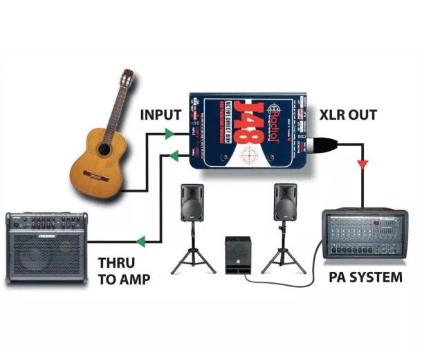 La J48 est conçue pour supporter des signaux de forte amplitude sans saturation, en utilisant seulement 5 mA de courant, généralement disponible sur une alimentation fantôme. Son alimentation à découpage permet de fournir 9 Volts aux circuits. La plupart des guitares et basses actives émettent des signaux de 7 Volts à volume maximal, tandis que d'autres DI saturent facilement à environ 3 Volts. Grâce à son headroom supérieur, la J48 ne rencontre pas ce problème, ce qui réduit les distorsions harmoniques, de phase et d'intermodulation. C'est une solution idéale pour résoudre les problèmes rencontrés par d'autres DI sur le marché, et le résultat est immédiat : ça sonne !