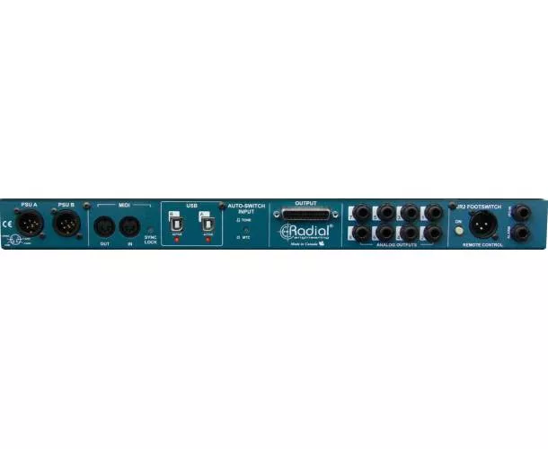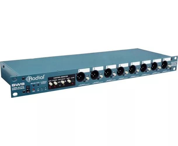 Le Radial SW8-USB est conçu pour l'utilisation de systèmes de playback redondants sur scène, avec deux entrées USB permettant de connecter un ordinateur principal et un ordinateur de secours. Il fournit huit canaux audio de haute qualité pour garantir une représentation en direct sans souci.