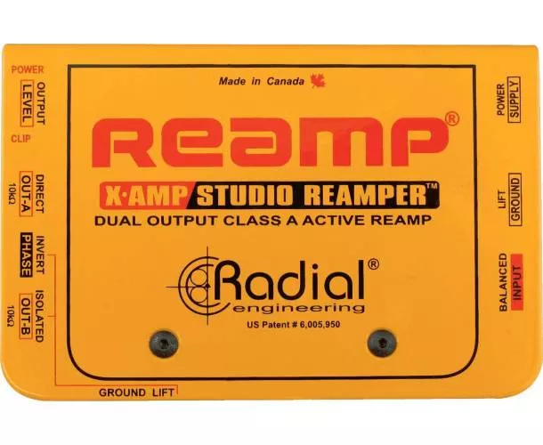 Le X-Amp Radial est un ré-amper actif qui permet de repasser le signal d'une guitare enregistrée "dry" dans un amplificateur ou une chaîne d'effets. Les guitaristes et les ingénieurs du son peuvent expérimenter différents amplis ou chaînes d'effets longtemps après l'enregistrement. Le X-Amp utilise un circuit actif classe A pour reproduire toutes les nuances sonores de la performance originale, faisant sonner l'ampli comme si la guitare y était directement reliée.