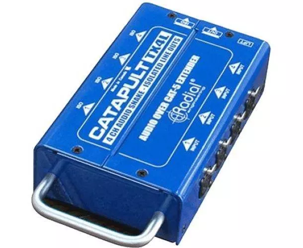 Les Catapult sont des séparateurs audio modulaires 4 canaux, comprenant un module émetteur et un récepteur transmettant un signal analogique ou numérique (AES) via un câble blindé CAT5. Chaque module émetteur dispose de 4 entrées et 4 sorties XLR, connecté à un module récepteur offrant deux séries de 4 sorties XLR. Ce système permet une flexibilité exceptionnelle grâce aux 6 modules équipés de sorties XLR parallèles et des sorties isolées au niveau micro ou ligne. Chaque module est doté d'un interrupteur de masse éliminant les interférences. L'association de différents modules offre une utilisation polyvalente, bien supérieure aux multipaires habituelles, tout en garantissant la simplicité d'une transmission par câble réseau.