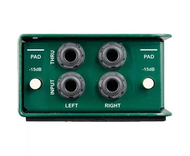 Ce modèle dispose de deux connecteurs Jack ainsi qu'un atténuateur d'entrée à -15 dB sur chaque canal. Il est également équipé d'un interrupteur de levée de masse qui déconnecte l'une des sorties XLR pour réduire les bourdonnements liés aux boucles de masse. Fabriqué en acier robuste, le boîtier agit comme un bouclier contre les champs magnétiques générés par les amplificateurs.