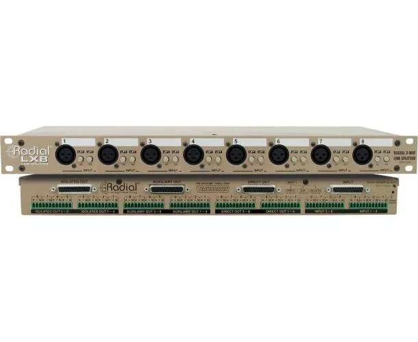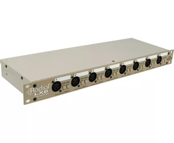 Un séparateur de signal au format professionnel. Le LX8 est un séparateur de ligne symétrique à huit canaux passif, capable de transmettre les signaux vers trois destinations différentes. La séparation des signaux de niveau ligne est essentielle dans le renforcement du son, mais si elle est mal réalisée, elle peut affaiblir la réponse en fréquence et provoquer des boucles de masse. Radial propose une solution clé en main avec le LX8R. Uniquement le meilleur. Pour transmettre les signaux entrants sur les huit entrées XLR ou l'entrée Sub-D 25 présente sur le panneau arrière aux trois sorties, le LX8R utilise des transformateurs Jensen haute performance, qui isolent efficacement les entrées des sorties et évitent tout risque de boucle de masse et de parasites. Grâce à ces composants de qualité, le LX8R supporte des signaux jusqu'à +26 dB sans saturation sur tout le spectre de fréquence, jusqu'à 20 kHz. La transmission du signal est assurée par trois sorties Sub-D 25, dont l'une est isolée et deux sont directes, et par des connexions de type Phoenix Euroblock.
