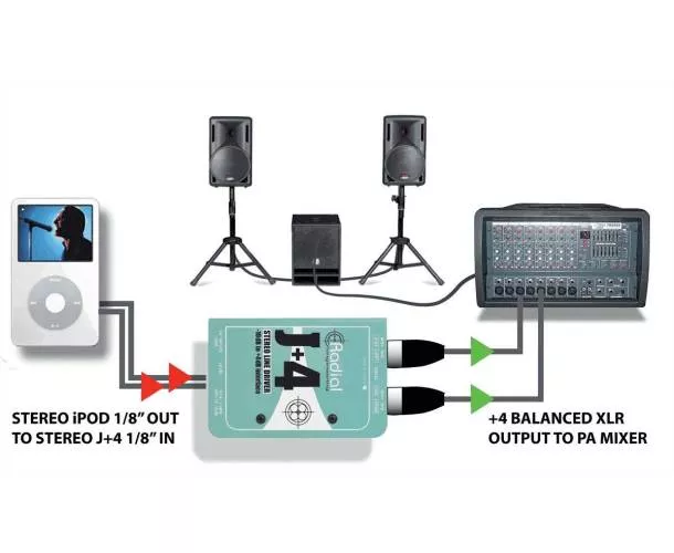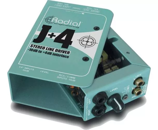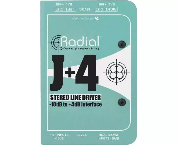 Le J+4 de Radial est une interface stéréo conçue pour accepter les signaux asymétriques -10dB "grand public" haute impédance et les convertir en signaux symétriques +4dB basse impédance, facilitant leur gestion dans des environnements professionnels comme la diffusion, les studios d'enregistrement et les captations de tournées en direct. Ce produit intègre un buffer de signal actif et un transformateur d'isolation pour éliminer le bruit, offrant un rapport signal/bruit supérieur à 95dB. Des contrôles pratiques incluent un contrôle de niveau stéréo, un filtre coupe-bas et un 'ground lift'. Les connecteurs d'entrée comprennent des jacks 6,35 mm pour mélangeurs DJ ou claviers, des RCA pour lecteurs CD, et un mini jack 3,5 mm pour iPods. Comme tous les produits Radial, le J+4 est construit pour résister aux rigueurs des tournées professionnelles, avec un boîtier en acier et une armature intérieure robuste. Sa conception innovante, avec une coquille en forme de livre, protège les contrôles et connecteurs, renforçant sa fiabilité. Son revêtement 'pad' offre un isolement mécanique et électrique. Le Radial J+4 délivre des performances sonores exceptionnelles, un headroom fabuleux et un ultra faible bruit, faisant de lui le compagnon idéal des systèmes audio professionnels.